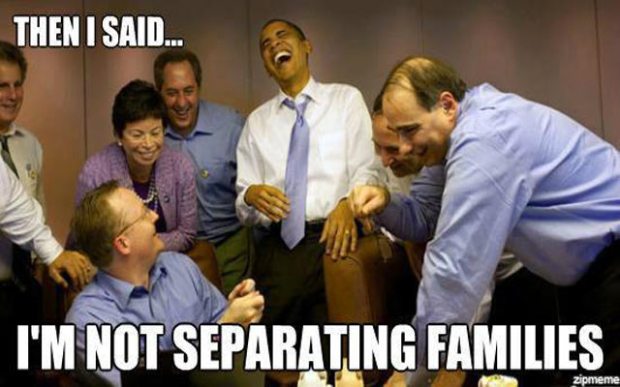 First, here’s Luis Serrano, who contributed one of the first memes to catch on, depicting President Obama laughing with his staff about family separation.