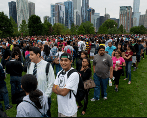 More than 5,000 people gathered in Chicago’s Navy Pier for a workshop about filling out the paperwork to apply for work authorization. And a day before the deferred action policy began, people lined up to get their records in order at Honduran Consulate’s office: