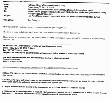 Rogers Email Courtesy ProgressNow.org RNC Official Says NM Governor Disrespected Custer by Meeting American Indians