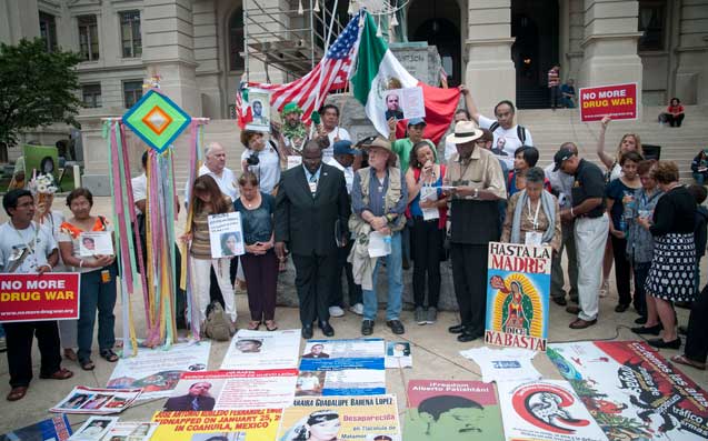 But Sicilia is a writer who can never quite abandon his poetic gift, and he continues to wield the power of symbols to illuminate long-obscured connections. After leaving poetry, he founded the Movement for Peace With Justice and Dignity, which arrived in New York City last week as part of a one-month Caravan for Peace across the United States. (See earlier Waging Nonviolence reports on the trip fromMexico and Austin.) The caravan focuses on cultivating international alliances toward ending the U.S. drug war, and it has powerfully articulated the connection between the tens of thousands of murders in Mexico and the criminalization and incarceration of millions of black and brown people on both sides of the border. But like all great art, Sicilia’s journey is also bringing unexpected and silenced truths to light, including one of the most overlooked aspects of the immigration debate: why undocumented migrants are here in the first place. Even more broadly, Sicilia’s cross-country caravan challenges no less than one of the modern world’s most cherished assumptions: the sovereignty of nation states.