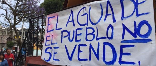 “The people are united,” said María Chávez, one of the leaders of the town’s resistance, which has based itself in the public library. The municipal building is papered with messages of support from other towns in the region. A banner proclaimed: “Our water is not for sale.”