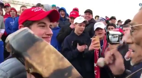 Nothing so perfectly encapsulates the current state of this country than the image of a young, right-wing white male wearing a MAGA hat and pathetically trying to intimidate a Native American Vietnam veteran.