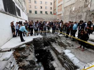 Archaeologists announced this week that the remains of an Aztec ball court and a temple erected to the god of the wind, Ehécatl, have been found on a street behind the