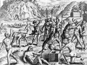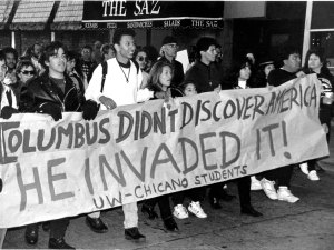 Columbus was the real savage: he tortured native peoples to try to convert them to Christianity, he enslaved them, he murdered them, and he raped native women. So this