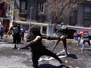 Protesters clashed with police in Chile’s capital Saturday during an anti-Columbus Day march organized by Indigenous groups, with activists calling for the return of